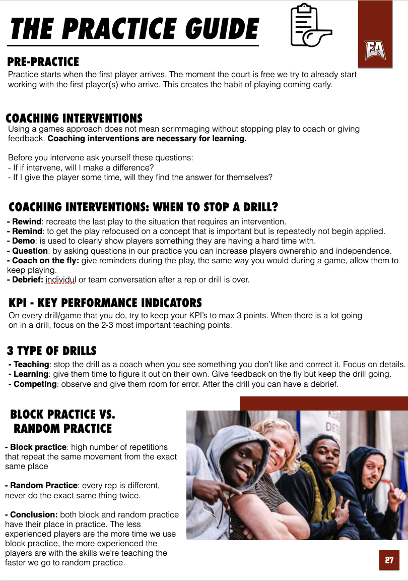 This comprehensive document was designed to provide our Academy coaches with everything they need to align with the club’s vision and identity while enhancing player development. It covers coaching expectations, our basketball identity, and a detailed overview of our style of play. As a bonus feature, you will also get access to a film breakdown library.