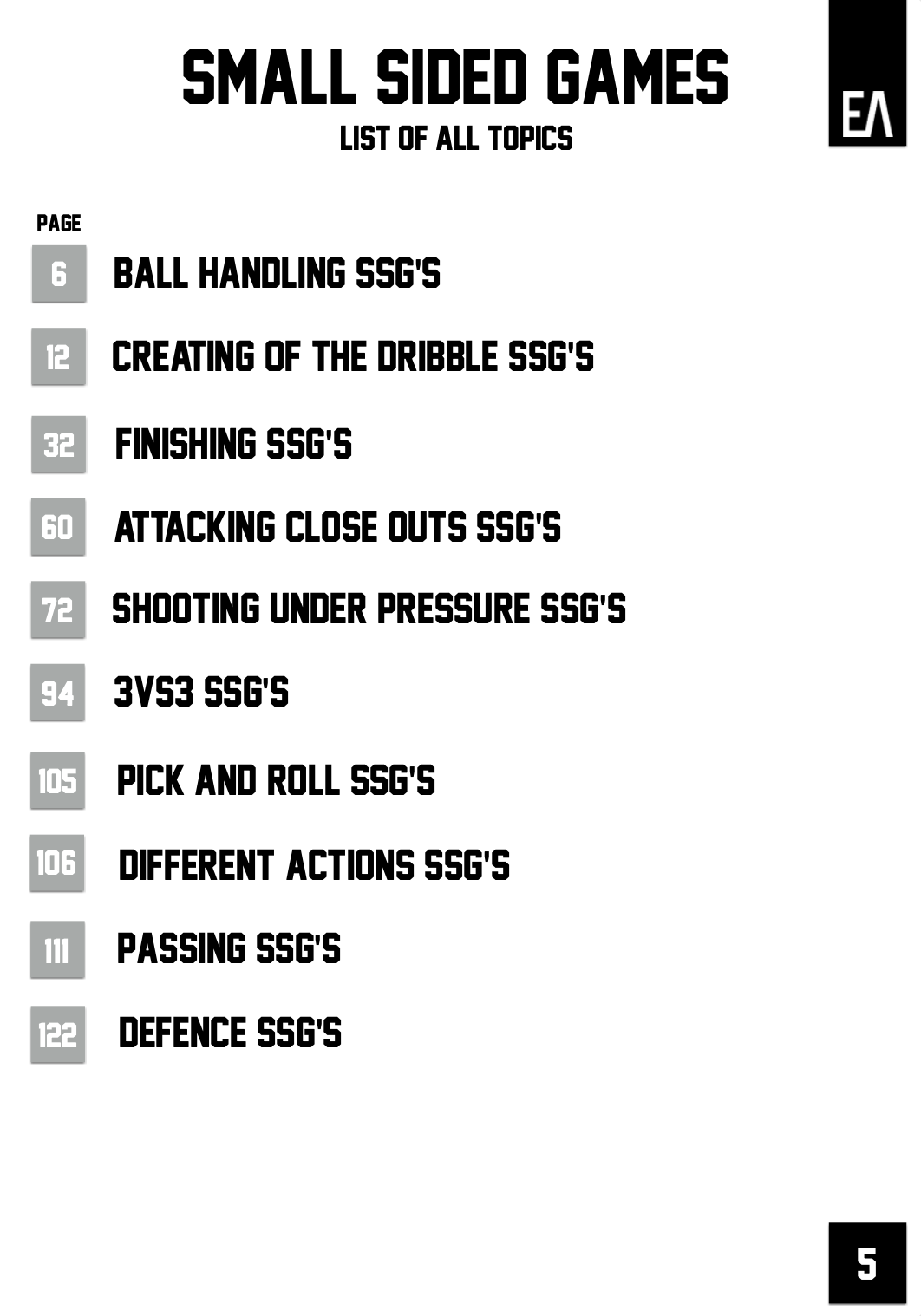 • Detailed Game Descriptions: Access 100 SSG’s used in our Elite Athlete (EA) training, including different formats like 1-on-1, 2-on-2, 3-on-3, and more. Each game is broken down with clear instructions and specific goals.